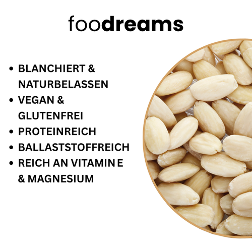 • 100 % Mandeln – blanchiert, geschält & ganze Kerne