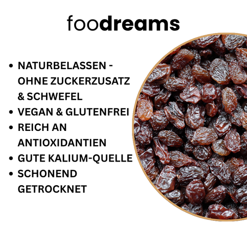 Hol dir unsere Premium-Jumbo-Rosinen von Foodreams – groß, saftig & unwiderstehlich.